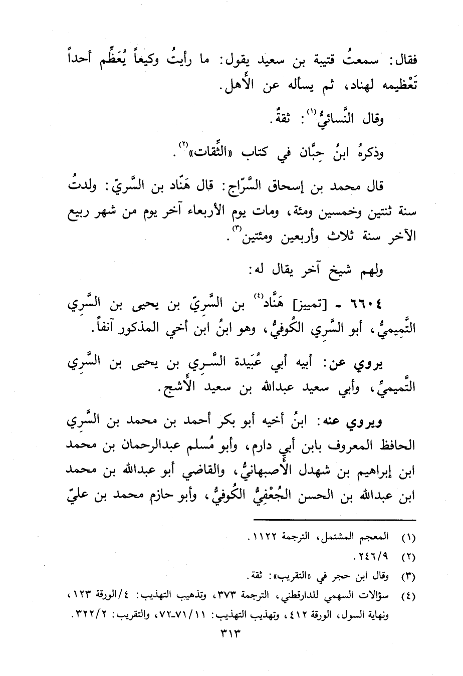 6604 - تمييز هناد بن السري بن يحيى بن السري التميمي (4) ، أَبُو السري الكوفي، وهو ابن ابن أخي المذكور آنفا.