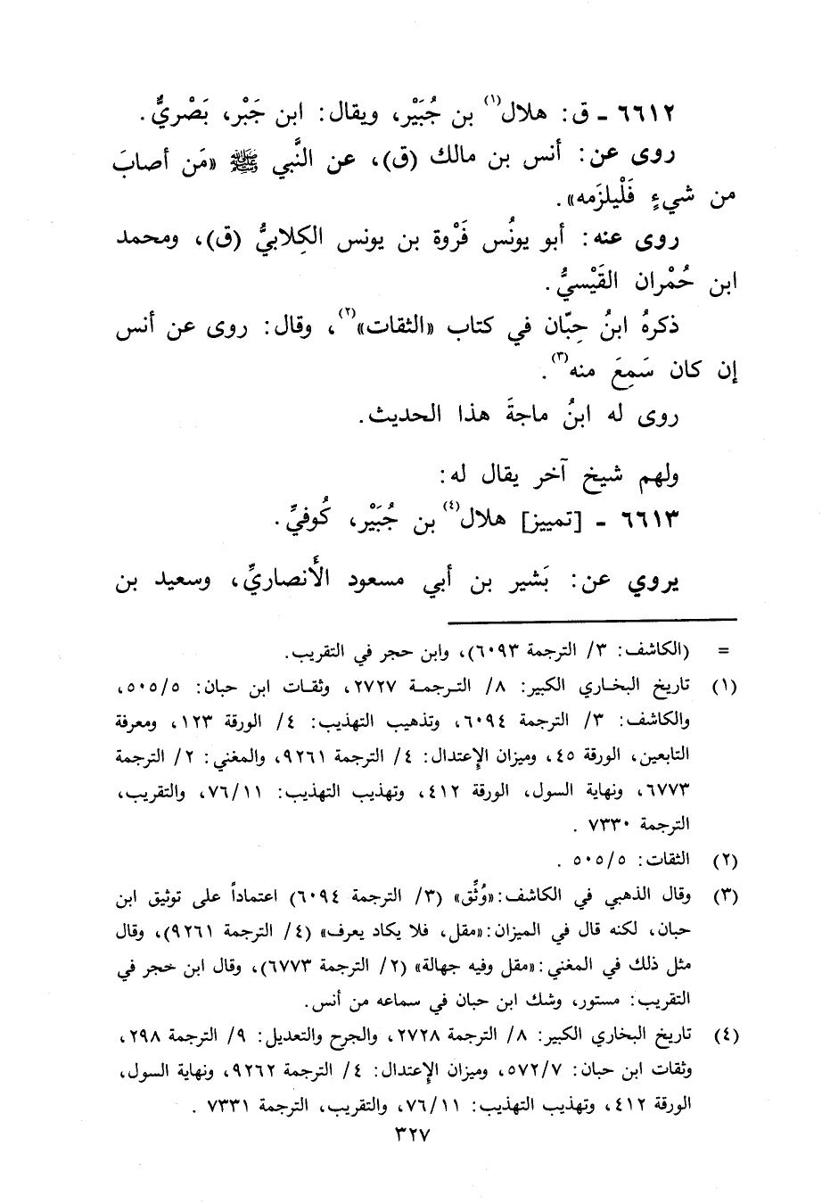 6613 - تمييز هلال بن جبير (4) ، كوفي.