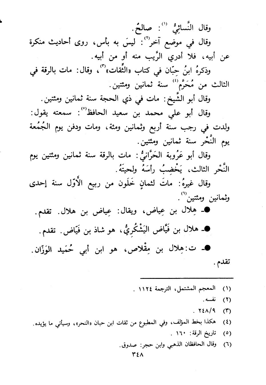 وذكره ابنُ حِبَّان في كتاب "الثقات" (3) ، وَقَال: مات بالرقة فِي الثالث من محرم (4) سنة ثمانين ومئتين.