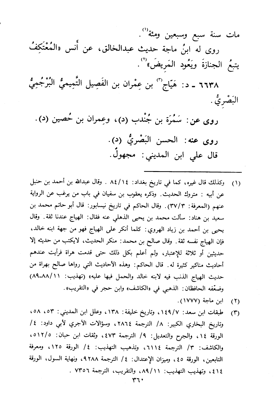 6638 - د: هياجبن عِمْران بن الفصيل التميمي البرجمي البَصْرِيّ (3) .