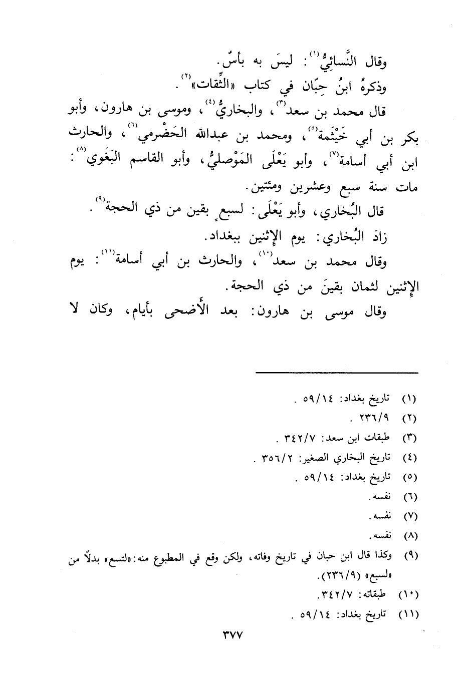 (9) وكذا قال ابْن حبان في تأريخ وفاته، ولكن وقع في المطبوع منه: لتسع" بدلا من" لسبع" (9 / 236) .