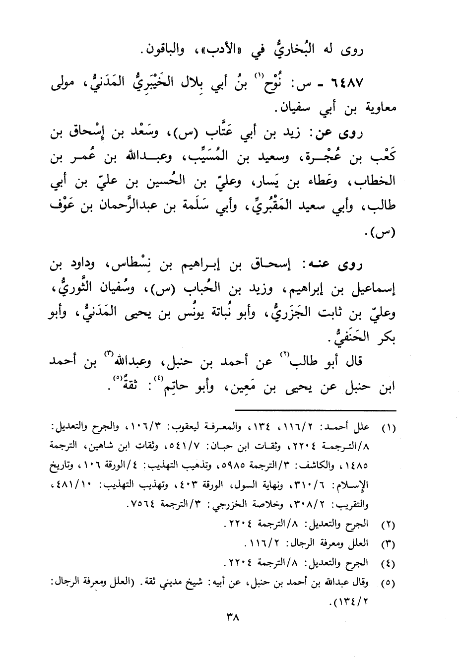 6487 - س: نوح بن أَبي بلال الخيبري المدني (1) ، مولى معاوية بْن أَبي سفيان.