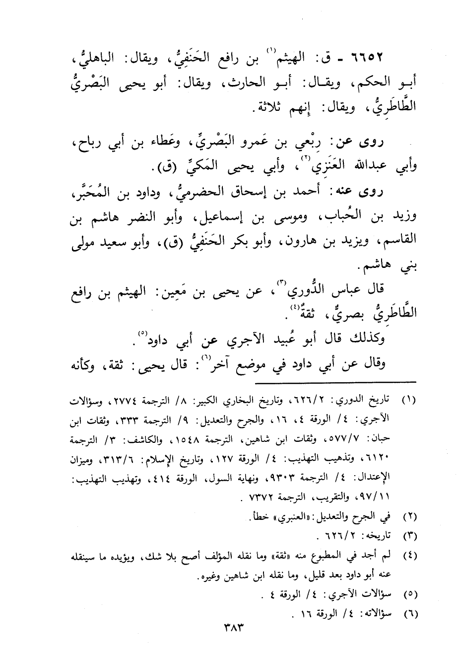 6652 - ق: الهيثم بن رافع الحنفي (1) ، ويُقال: الباهلي، أَبُو الحكم، ويُقال: أبو الحارث، ويُقال: أبويحيى البَصْرِيّ الطاطري، ويُقال: إنهم ثلاثة.