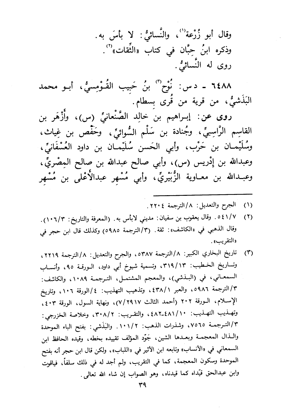 6488 - دس: نوح بن حبيب القومسي (3) ، أَبُو محمد البذشي، من قرية من قرى بسطام.