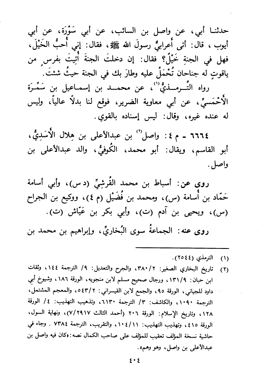 (2) تاريخ البخاري الصغير: 2 / 380، والجرح والتعديل: 9 / الترجمة 144، وثقات ابن حبان: 9 / 131، ورجال صحيح مسلم لابن منجويه، الورقة 186، وشيوخ أبي داود للجياني، الورقة 95، والجمع لابن القيسراني: 2 / 543، والمعجم المشتمل، الترجمة 1090، والكاشف: 3 / الترجمة 6130، وتذهيب التهذيب: 4 / الورقة 128، وتاريخ الاسلام: الورقة 206 (أحمد الثالث 2917 / 7) ، ونهاية السول، الورقة 415، وتهذيب التهذيب: 11 / 104، والتقريب، الترجمة 7384. وجاء في حاشية نسخة المؤلف تعقيب للمؤلف على صاحب الكمال نصه: كان فيه واصل بن عبد الاعلى بن واصل، وهو وهم".