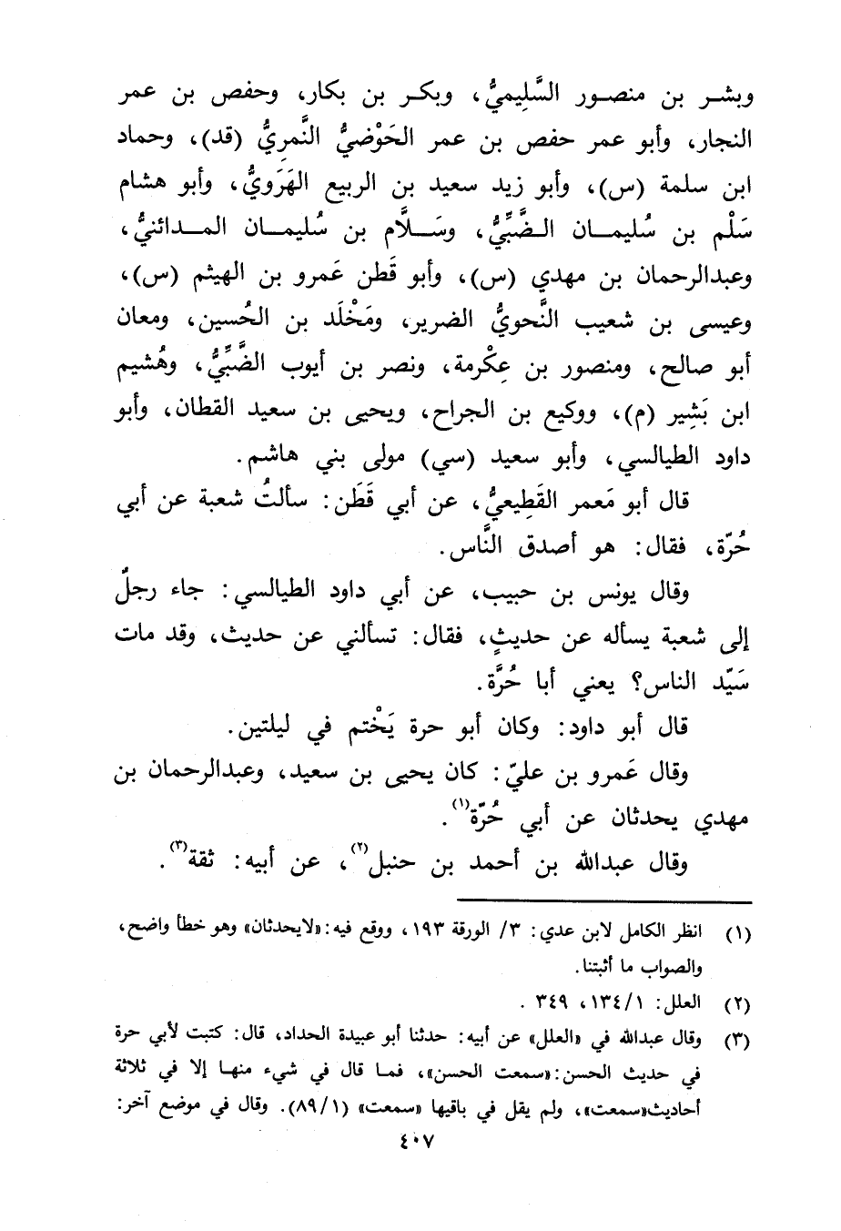 (3) وَقَال عَبد الله في " العلل" عَن أبيه: حَدَّثَنَا أبو عُبَيدة الحداد، قال: كتبت لابي حرة في حديث الحسن: سمعت الحسن"، فما قال في شيء منها إلا في ثلاثة أحاديث" سمعت"، ولم يقل في باقيها" سمعت" (1 / 89) . وَقَال في موضع آخر: