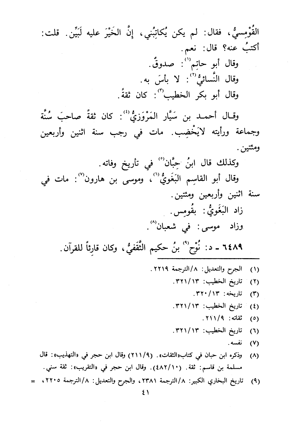 6489 - د: نوح بن حكيم الثقفي (9) ، وكان قارئا للقرآن.