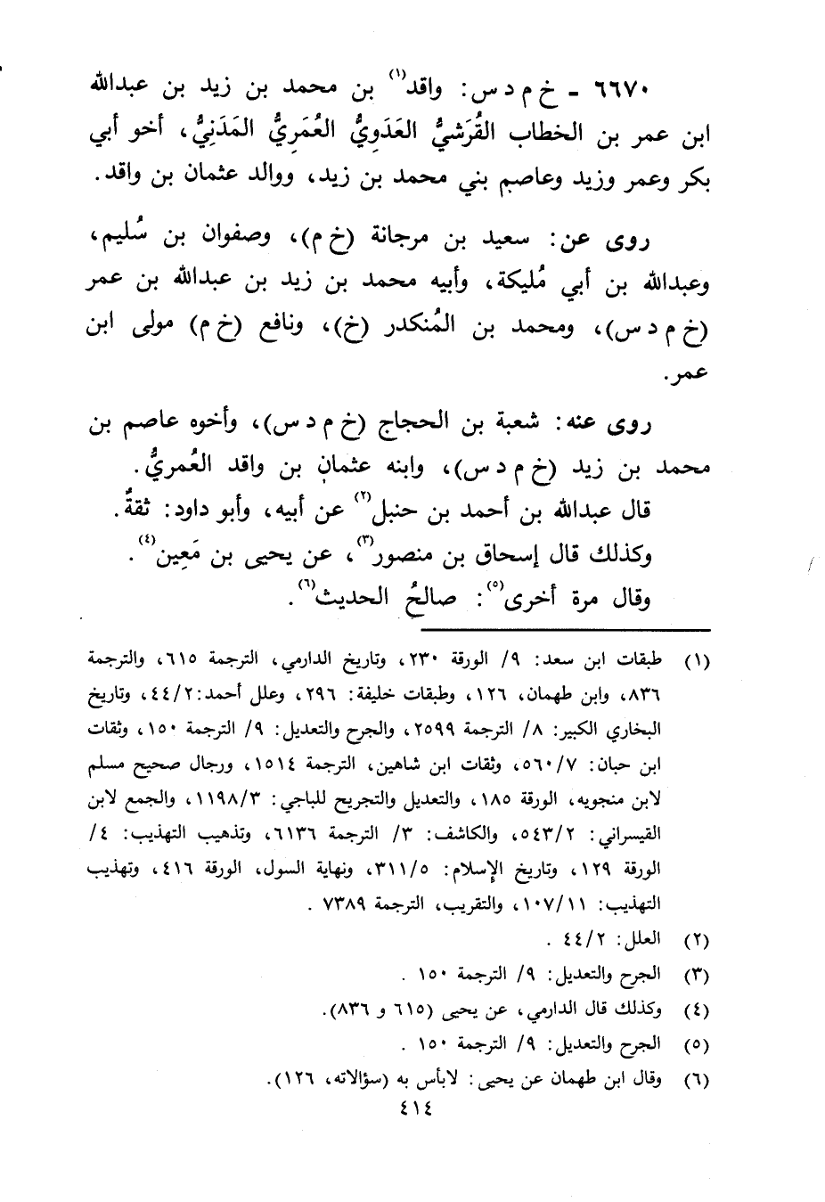 6670 - خ م د س: واقد بْن مُحَمَّد بْن زَيْد بْن عَبد اللَّهِ بْن عُمَر بْن الخطاب القرشي العدوي العُمَري المدني (1) ، أخو أبي بكر وعُمَر وزيد وعاصم بني محمد بن زيد، ووالد عثمان بن واقد.