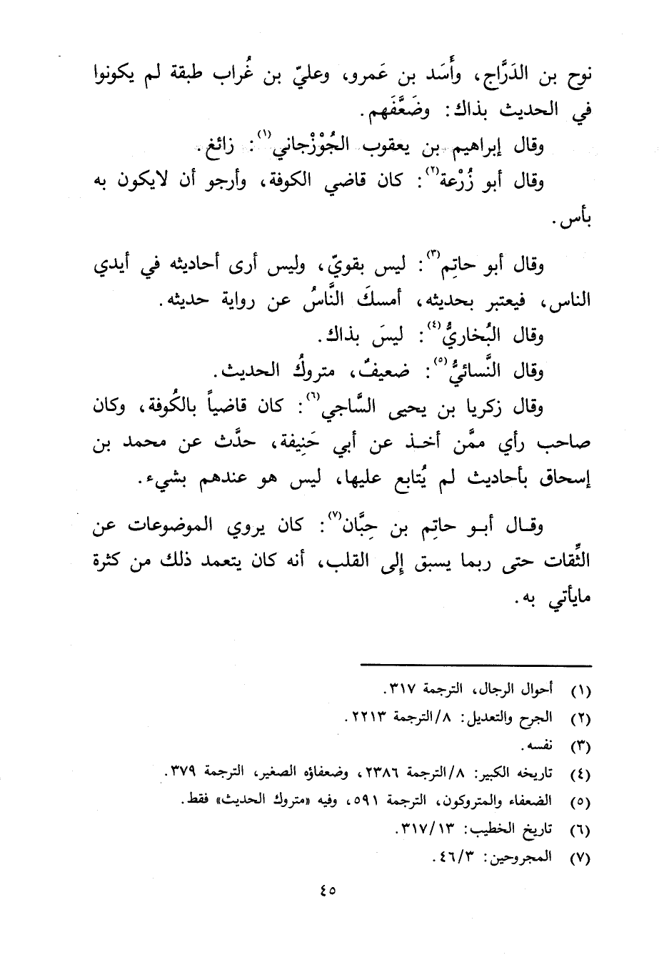 (4) تاريخه الكبير: 8 / الترجمة 2386، وضعفاؤه الصغير، الترجمة 379.