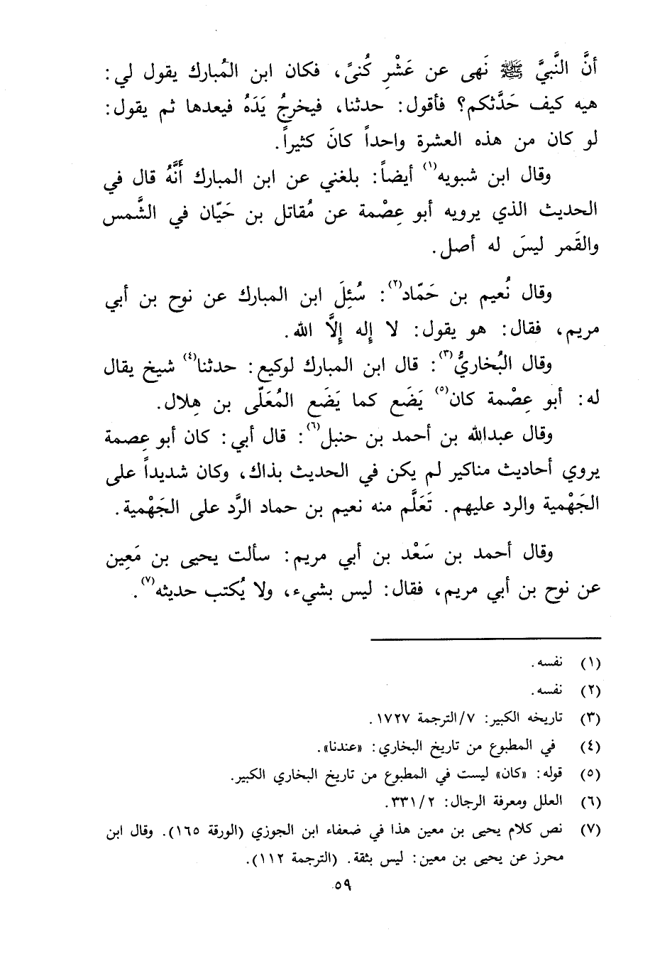 (7) نص كلام يحيى بن مَعِين هذا في ضعفاء ابن الجوزي (الورقة 165) . وَقَال ابن محرز عَن يحيى بْن مَعِين: ليس بثقة. (الترجمة 112) .
