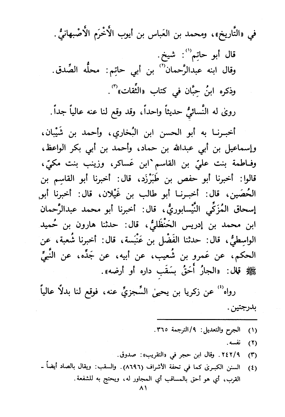 (1) الجرح والتعديل: 9 / الترجمة 365.