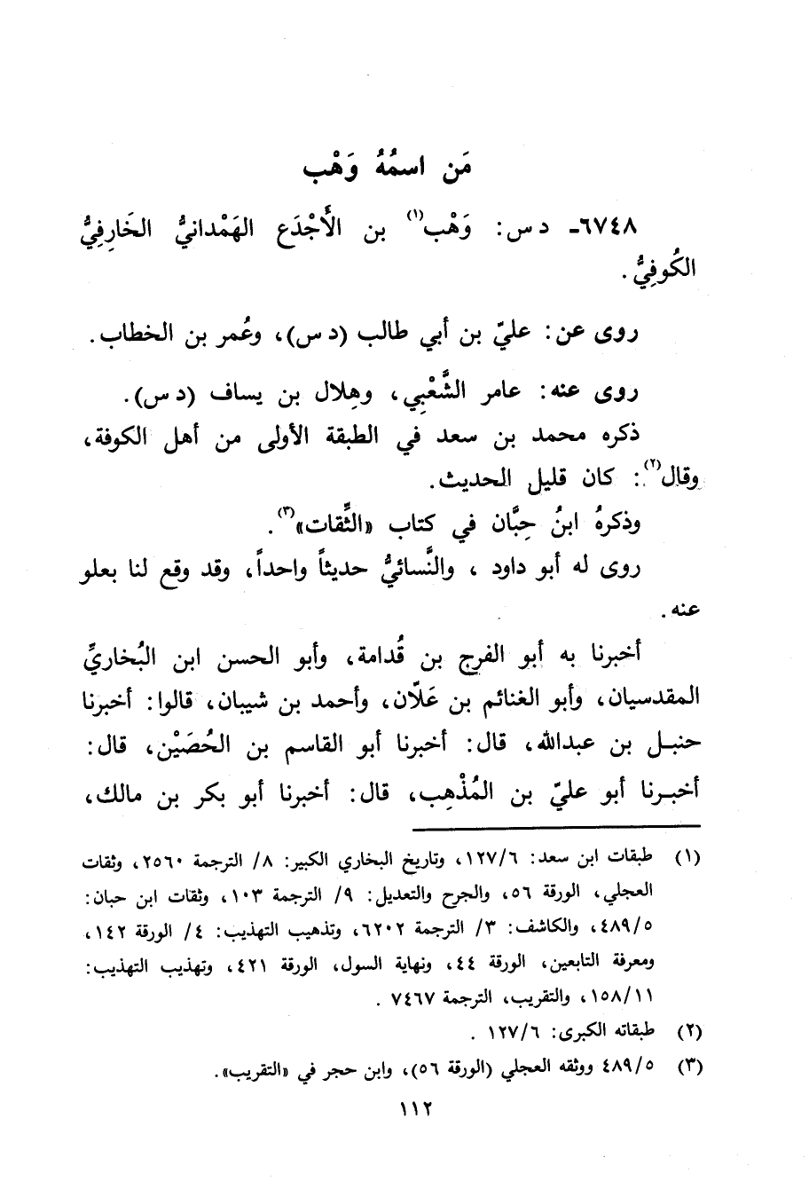 6748 - د س: وهْب بن الأَجْدَع الهمداني الخارفي الكوفي (1) .