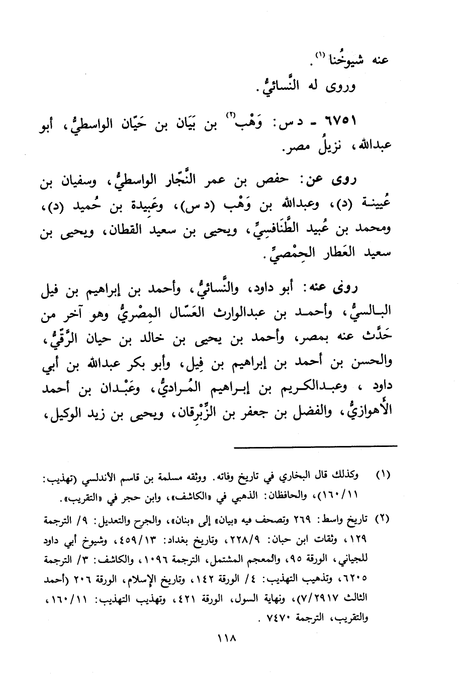6751 - دس: وهْب بن بيان بن حيان الْوَاسِطِيّ (2) ، أَبُو عَبد اللَّهِ، نزيل مصر.