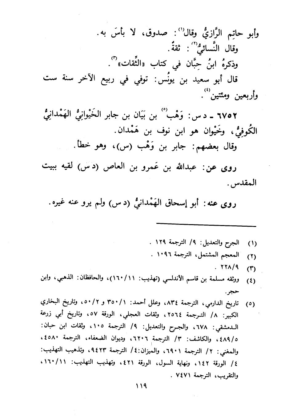 6752 - د س: وهْب بن جَابِر الخيواني الهمداني الكوفي (5) ، وخيوان هُوَ ابْن نوف بْن همدان.