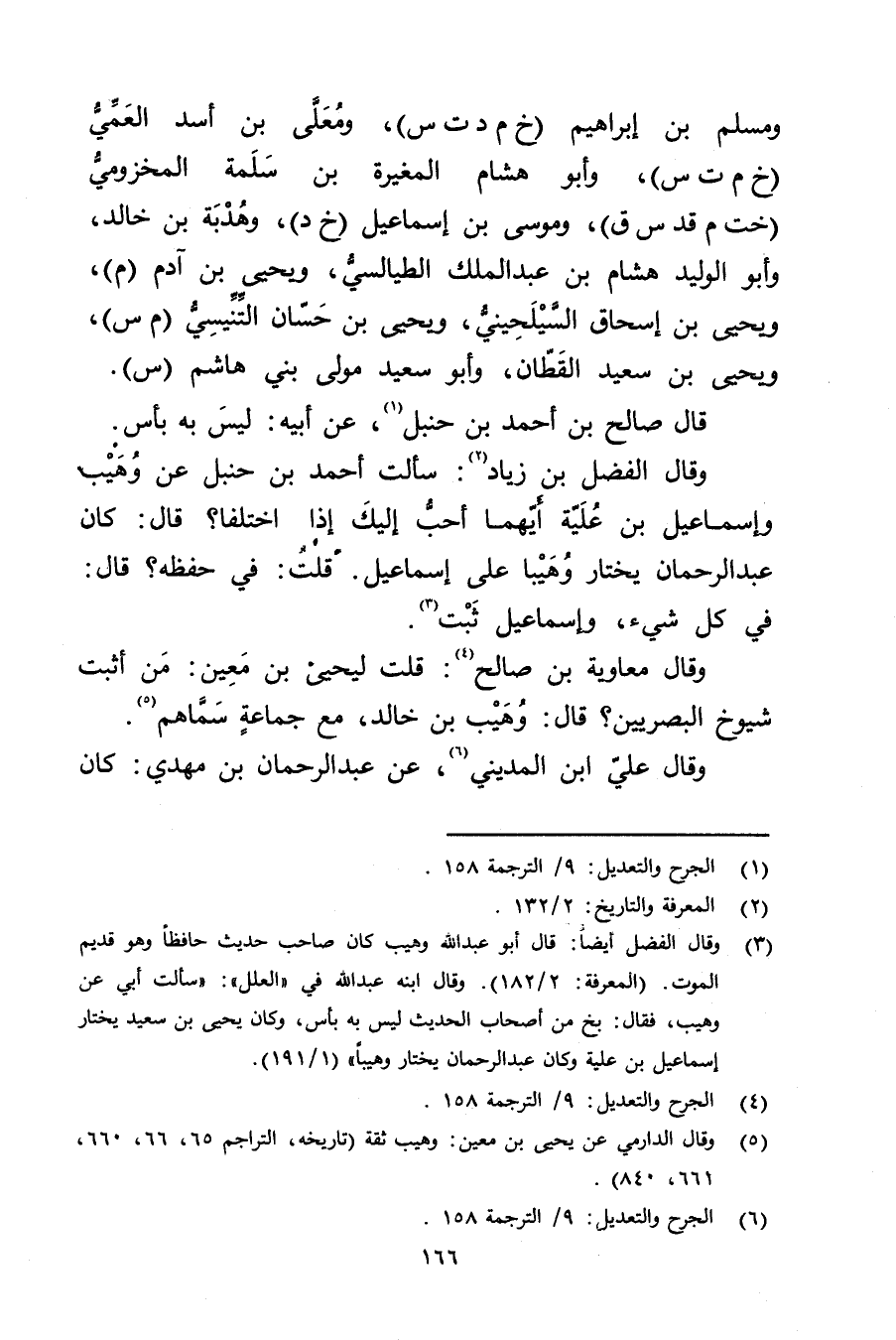 (5) وَقَال الدارمي عَن يحيى بْن مَعِين: وهيب ثقة (تاريخه، التراجم 65، 66، 660، 661، 840) (6) الجرح والتعديل: 9 / الترجمة 158