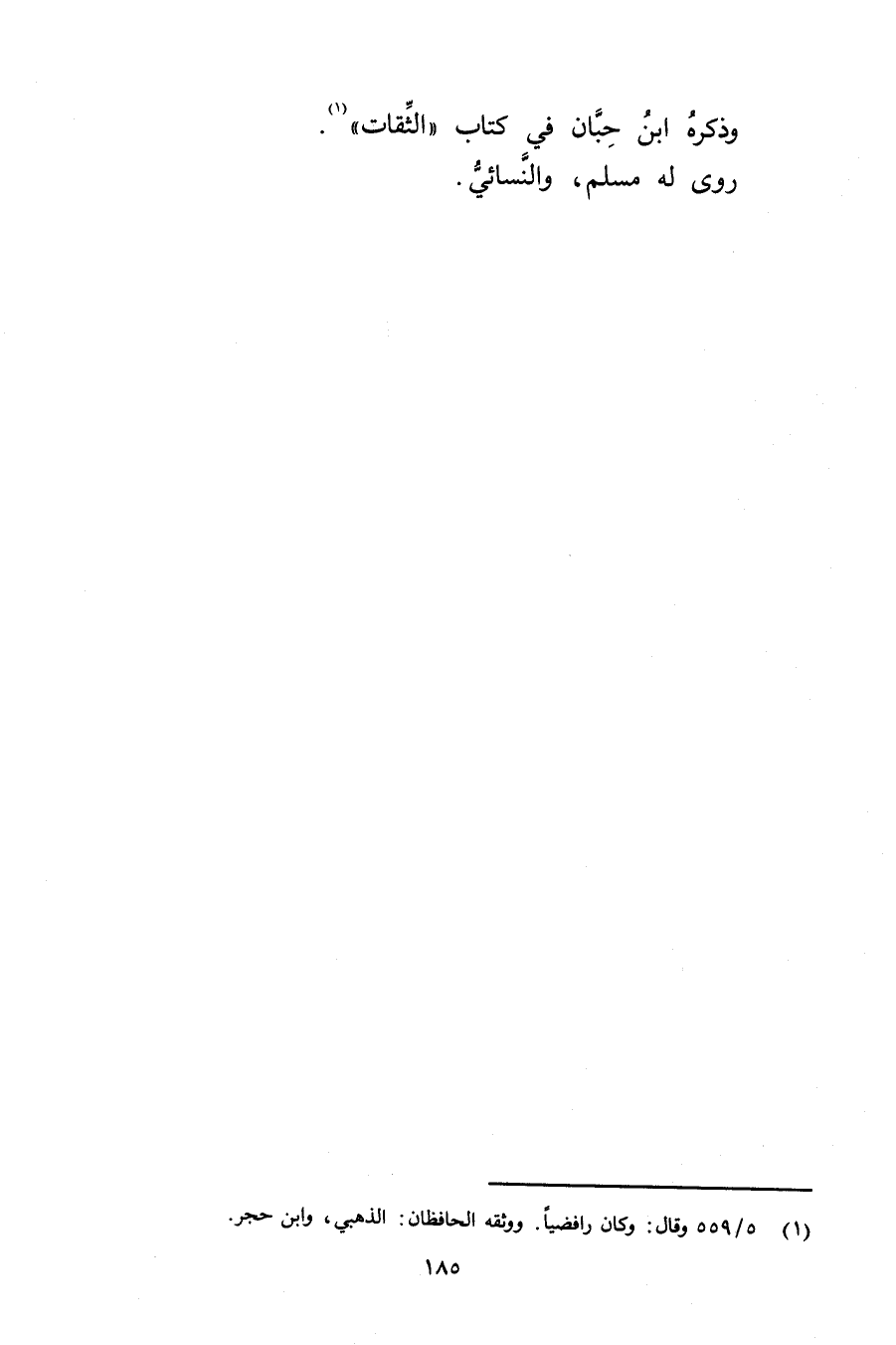 (1) 5 / 559 وَقَال: وكان رافضيا. ووثقه الحافظان: الذهبي وابن حجر
