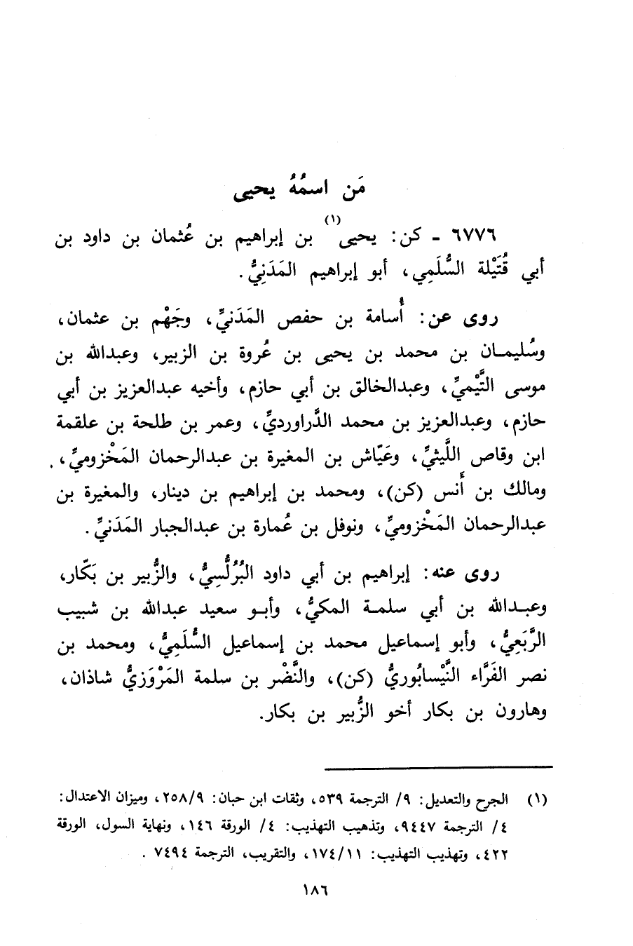 6776 - كن: يَحْيَى بن إِبْرَاهِيم بن عُثْمَان بن داود بن أَبي قتيبة السُّلَمِيّ (1) ، أَبُو إِبْرَاهِيم المدني.