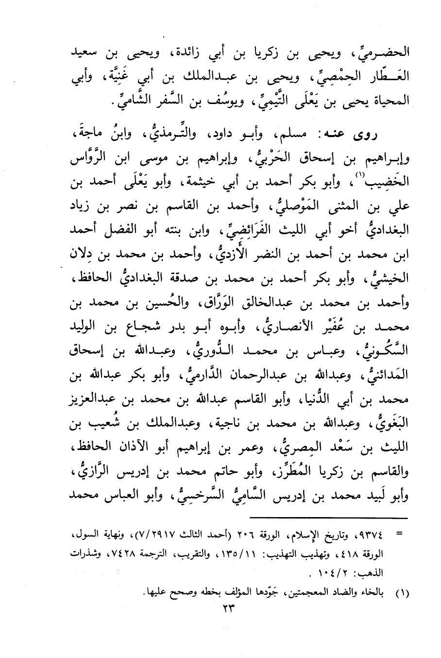 = 9374، وتاريخ الاسلام، الورقة 206 (أحمد الثالث 2917 / 7) ، ونهاية السول، الورقة 418، وتهذيب التهذيب: 11 / 135، والتقريب، الترجمة 7428، وشذرات الذهب: 2 / 104.