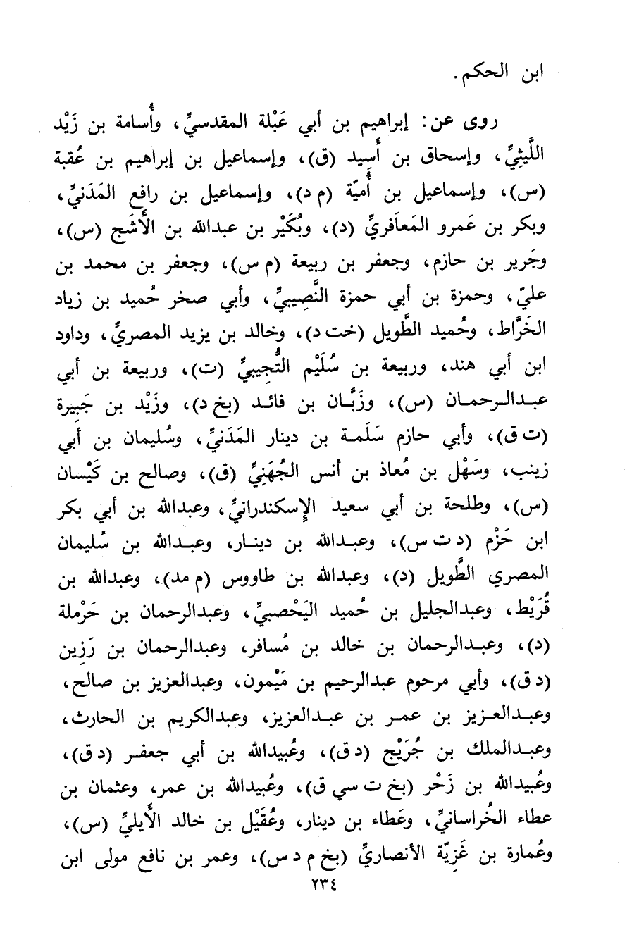 رَوَى عَن: إِبْرَاهِيم بْن أَبي عبلة الْمَقْدِسِيّ، وأسامة بْن زيد الليثي، وإسحاق بْن أسيد (ق) ، وإِسْمَاعِيل بْن إِبْرَاهِيمَ بْن عقبة (س) ، وإسماعيل بن أمية (م د) ، وإِسْمَاعِيل بْن رافع المدني، وبكر بْن عَمْرو المعافري (د) ، وبكير بْن عَبد اللَّهِ بْن الأشج (س) ، وجرير بْن حازم، وجعفر بْن رَبِيعَة (م س) ، وجعفر بن محمد بن علي، وحمزة بْن أَبي حمزة النصيبي، وأبي صخر حميد بْن زياد الخراط، وحميد بن الطويل (خت د) ، وخالد بْن يزيد المِصْرِي، وداود ابن أَبي هند، وربيعة بْن سليم التجيبي (ت) ، وربيعة بْن أَبي عَبْد الرَّحْمَنِ (س) ، وزبان بْن فائد (بخ د) ، وزيد بْن جبيرة (ت ق) ، وأبي حازم سلمة بْن دينار المدني، وسُلَيْمان بْن أَبي زَيْنَب، وسهل بْن مُعَاذ بْن أَنَس الجهني (ق) ، وصالح بْن كيسان (س) ، وطلحة بْن أَبي سَعِيد الإسكندراني، وعبد الله بْن أَبي بكر بْن حزم (د ت س) ، وعبد الله بْن دينار، وعبد الله بْن سُلَيْمان المِصْرِي الطويل (د) ، وعبد الله بن طاووس (م مد) ، وعبد الله بْن قريط، وعبد الجليل بْن حميد اليحصبي، وعبد الرحمن بْن حرملة (د) ، وعبد الرحمن بْن خالد بْن مسافر، وعبد الرحمن بْن رزين (د ق) ، وأبي مرحوم عَبد الرحيم بْن ميمون، وعَبْد العزيز بْن صَالِح، وعبد العزيز بْن عُمَر بْن عَبْد العزيز، وعبد الكريم بْن الحارث، وعبد الملك بن جُرَيْج (دق) ، وعُبَيد الله بْن أَبي جعفر (د ق) ، وعُبَيد اللَّه بْن زحر (بخ ت سي ق) ، وعُبَيد اللَّه بْن عُمَر، وعثمان بْن عَطَاء الخراساني، وعطاء بْن دينار، وعقيل بْن خَالِد الأيلي (س) ، وعمارة بن غزية الأَنْصارِيّ (بخ م دس) ، وعُمَر بْن نافع مولى ابْن