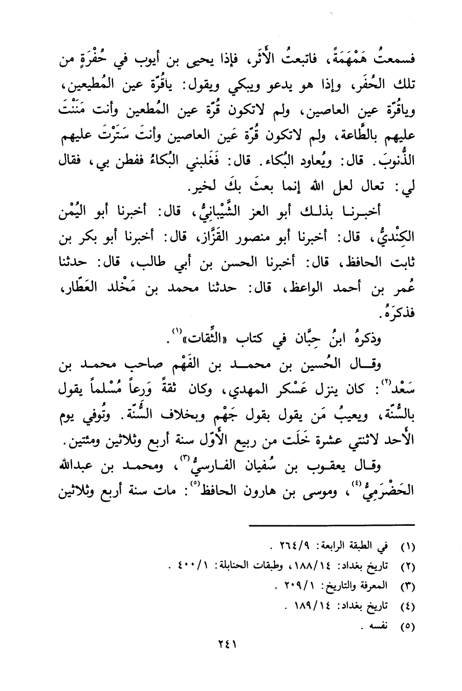 (2) تاريخ بغداد: 14 / 188، وطبقات الحنابلة: 1 / 400.