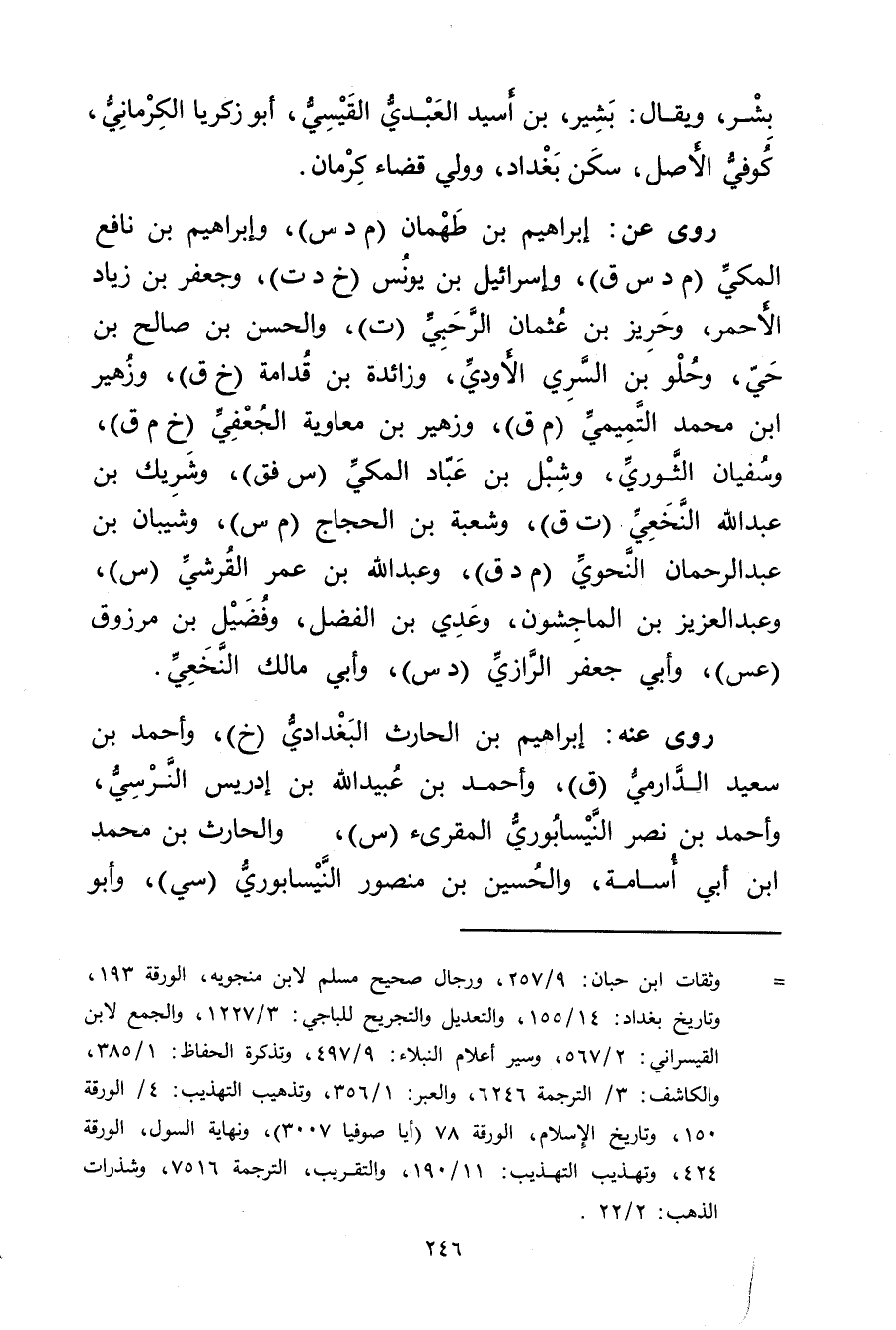 = وثقات ابن حبان: 9 / 257، ورجال صحيح مسلم لابن منجويه، الورقة 193، وتاريخ بغداد: 14 / 155، والتعديل والتجريح للباجي: 3 / 1227، والجمع لابن القيسراني: 2 / 567، وسير أعلام النبلاء: 9 / 497، وتذكرة الحفاظ: 1 / 385 والكاشف: 3 / الترجمة 6246، والعبر: 1 / 356، وتذهيب التهذيب: 4 / الورقة 150، وتاريخ الاسلام، الورقة 78 (أيا صوفيا 3007) ، ونهاية السول، الورقة 424، وتهذيب التهذيب: 11 / 190، والتقريب، الترجمة 7516، وشذرات الذهب: 2 / 22