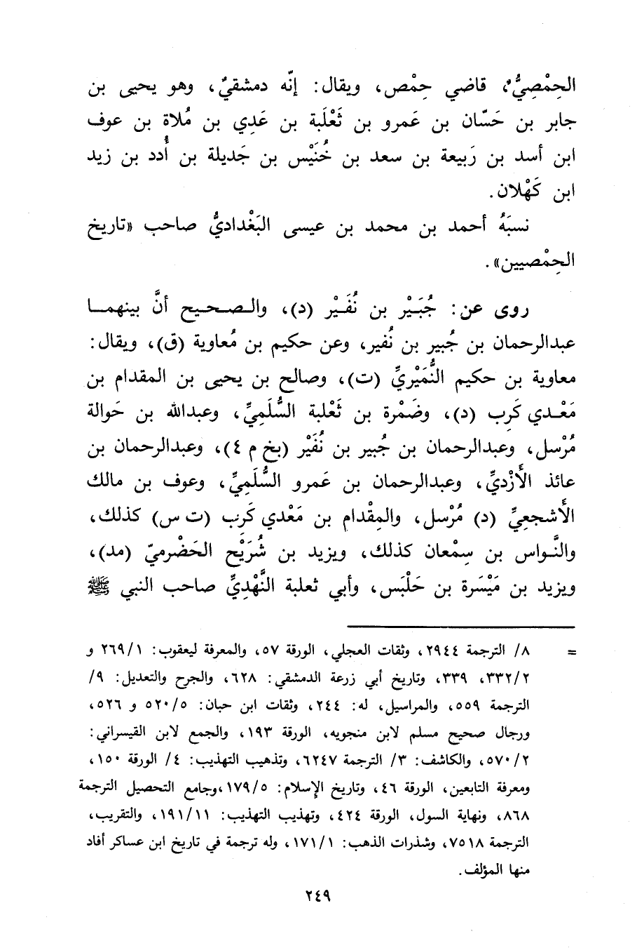 نسبه أَحْمَد بْن مُحَمَّد بْن عِيسَى البغدادي صاحب" تاريخ الحمصيين.