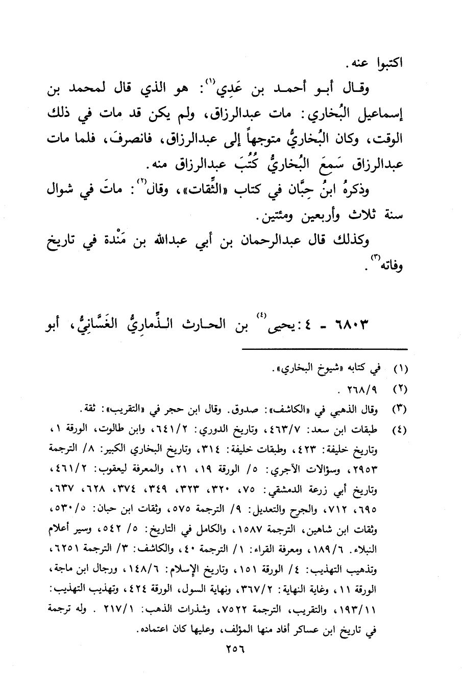 (4) طبقات ابن سعد: 7 / 463، وتاريخ الدوري: 2 / 641، وابن طالوت، الورقة 1، وتاريخ خليفة: 433، وطبقات خليفة: 314، وتاريخ البخاري الكبير: 8 / الترجمة 2953، وسؤالات الآجري: 5 / الورقة 19، 21، والمعرفة ليعقوب: 2 / 461، وتاريخ أبي زرعة الدمشقي: 75، 320، 323، 349، 374، 628، 637، 695، 712، والجرح والتعديل: 9 / الترجمة 575، وثقات ابن حبان: 5 / 530، وثقات ابن شاهين، الترجمة 1587، والكامل في التاريخ: 5 / 542، وسير أعلام النبلاء: 6 / 189، ومعرفة القراء: 1 / الترجمة 40، والكاشف: 3 / الترجمة 6251، وتذهيب التهذيب: 4 / الورقة 151، وتاريخ الاسلام: 6 / 148، ورجال ابن ماجة، الورقة 11، وغاية النهاية: 2 / 367، ونهاية السول، الورقة 424، وتهذيب التهذيب: 11 / 193، والتقريب، الترجمة 7522، وشذرات الذهب: 1 / 217، وله ترجمة في تاريخ ابن عساكر أفاد منها المؤلف، وعليها كان اعتماده.