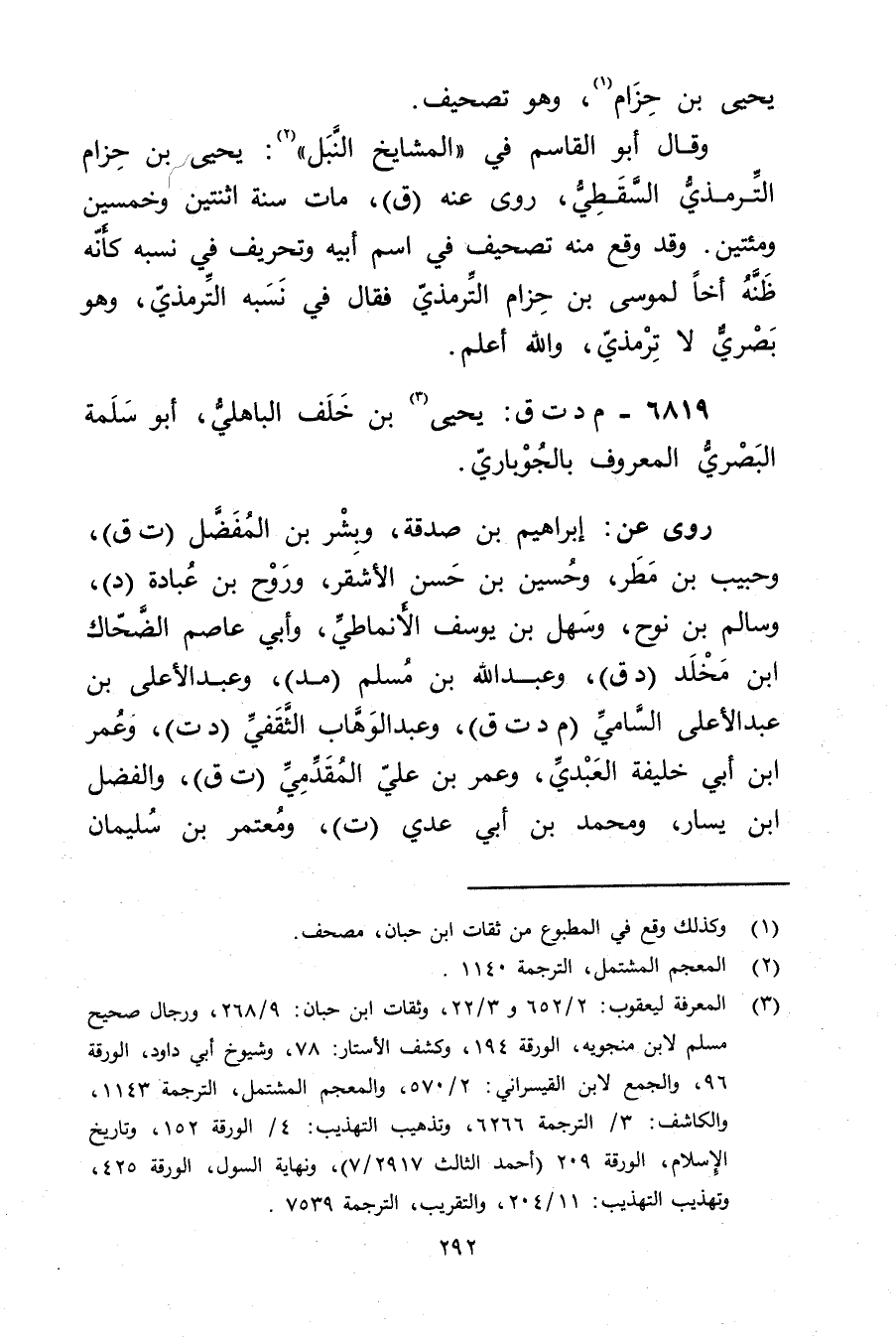 (3) المعرفة ليعقوب: 2 / 652 و3 / 22، وثقات ابن حبان: 9 / 268، ورجال صحيح مسلم لابن منجويه، الورقة 194، وكشف الاستار: 78، وشيوخ أبي داود، الورقة 96، والجمع لابن القيسراني: 2 / 570، والمعجم المشتمل: الترجمة 1143، والكاشف: 3 / الترجمة 6266، وتذهيب التهذيب: 4 / الورقة 152، وتاريخ الاسلام، الورقة 209 (أحمد الثالث 2917 / 7) ، ونهاية السول، الورقة 425، وتهذيب التهذيب: 11 / 204، والتقريب، الترجمة 7539