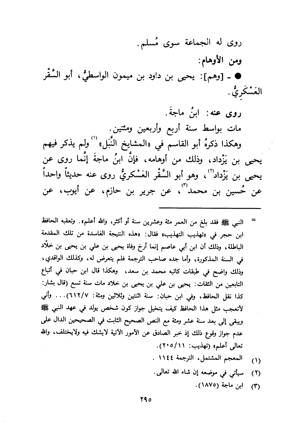 • [وَهْمٌ] يَحْيَى بن داود بن ميمون الواسطي، أبوالسقر العسكري.