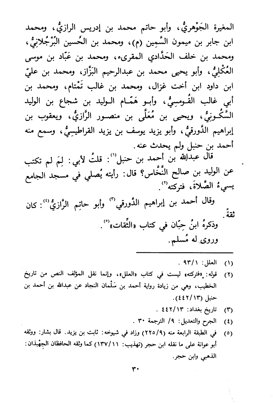 (4) الجرح والتعديل: 9 / الترجمة 30.