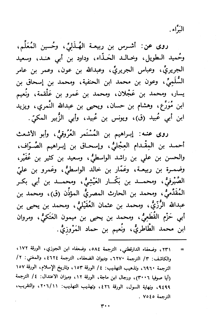 = 231، وضعفاء الدارقطني، الترجمة 584، وضعفاء ابن الجوزي، الورقة 172، والكاشف: 3 / الترجمة 62870، وديوان الضعفاء، الترجمة 4624، والمغني: 2 / الترجمة 6960، وتذهيب التهذيب: 4 / الورقة 153، وتاريخ الاسلام، الورقة 157، (أيا صوفيا 3006) ورجال ابن ماجة، الورقة 12، وميزان الاعتدال: 4 / الترجمة 9499، ونهاية السول، الورقة 426، وتهذيب التهذيب: 11 / 206، والتقريب، الترجمة 5745