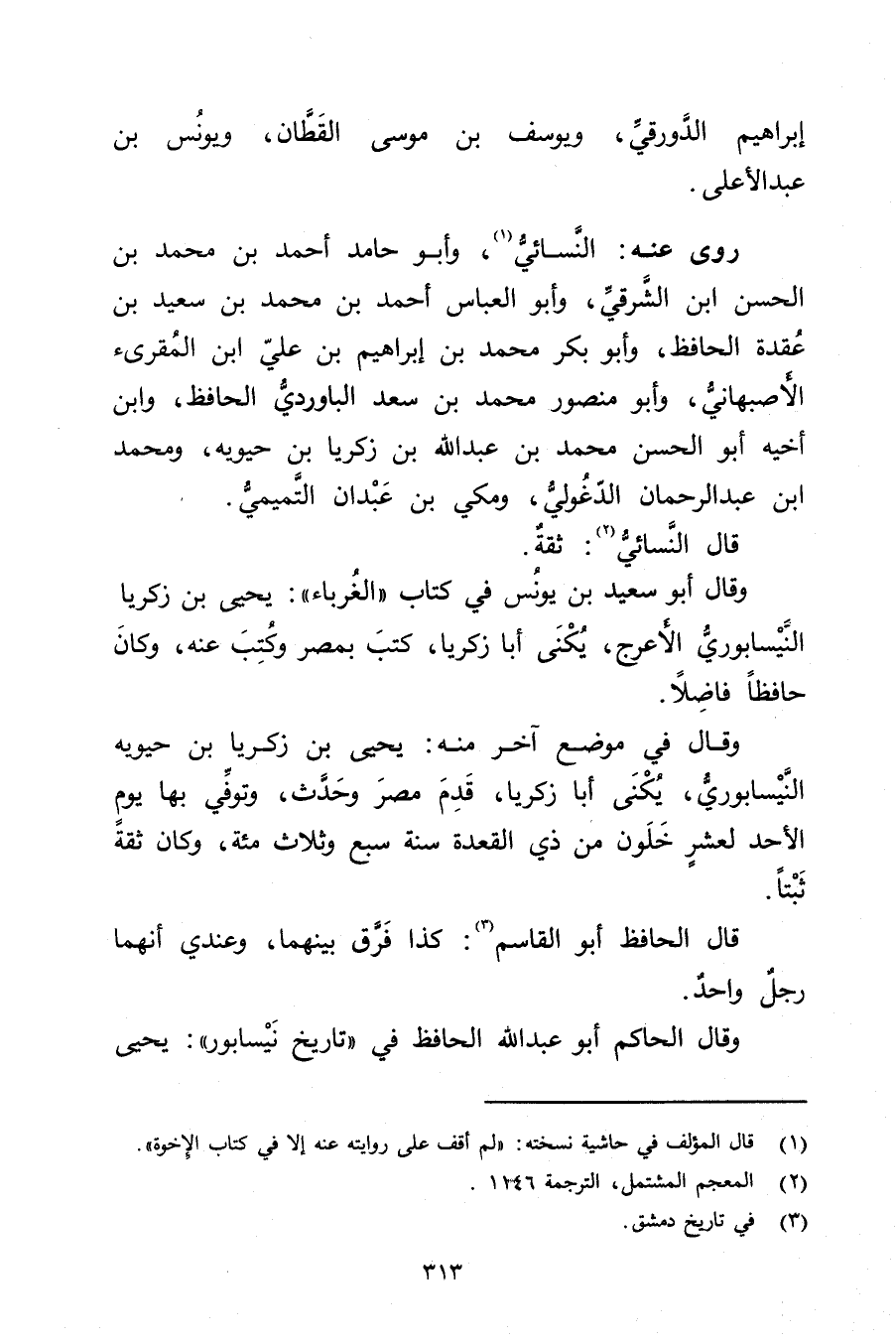 وَقَال الحاكم أَبُو عَبْد اللَّهِ الْحَافِظ في " تاريخ نيسابور": يحيى