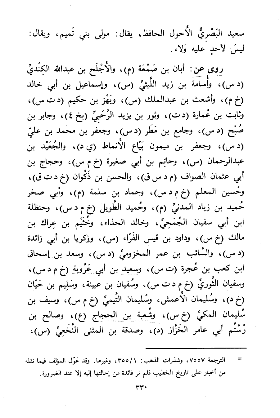 = الترجمة 7557، وشذرات الذهب: 1 / 355، وغيرها وقد عول المؤلف فيما نقله من أخبار على تاريخ الخطيب فلم نر فائدة من إحالتها إليه إلا عند الضرورة