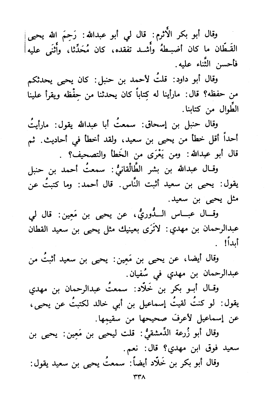 وَقَال أَبُو بَكْرِ بْن خلاد أيضا: سمعت يحيى بن سَعِيد يَقُول: