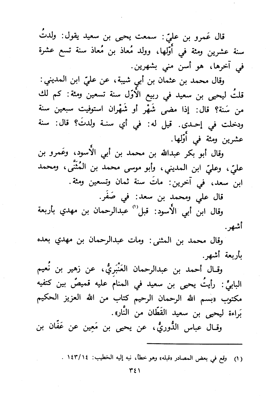 (1) وقع في بعض المصادر" قبله" وهو خطأ، نبه إليه الخطيب: 14 / 143