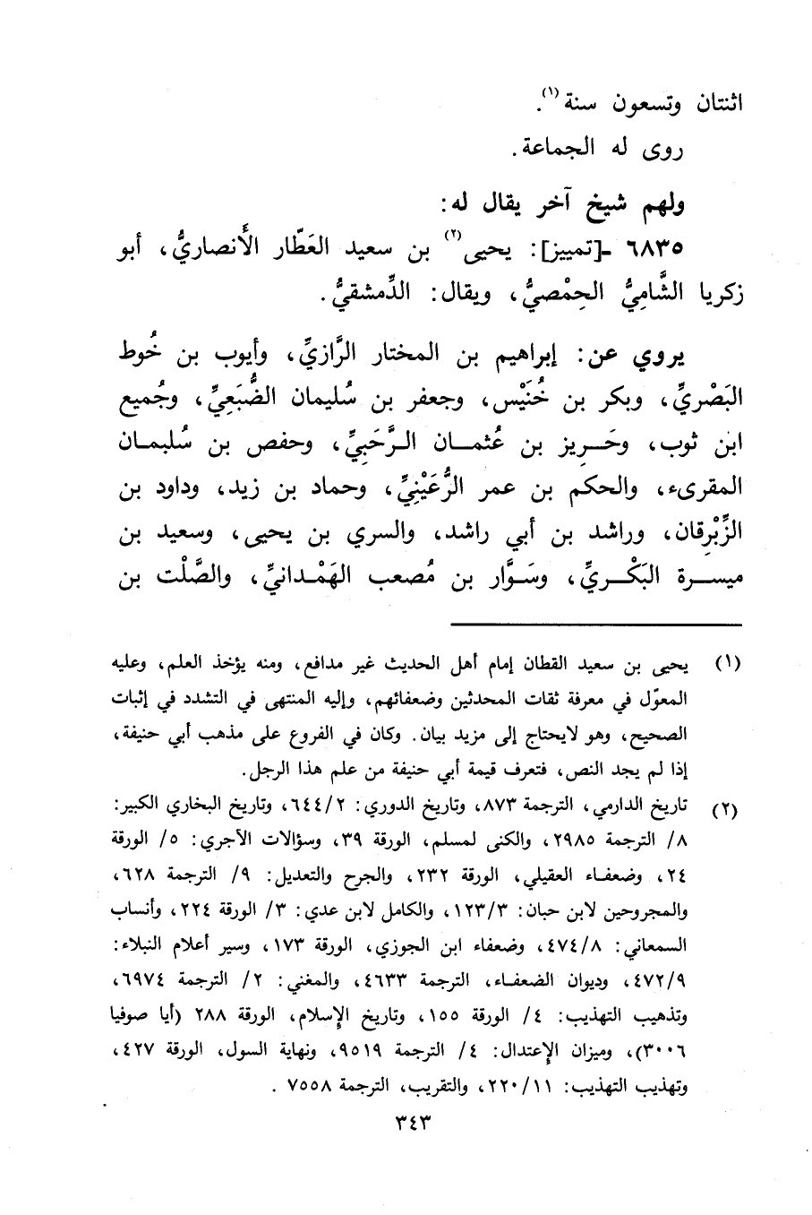 6835 - تمييز: يَحْيَى بن سَعِيد العطار الأَنْصارِيّ (2) أَبُو زكريا الشامي الحمصي، ويُقال: الدمشقي.