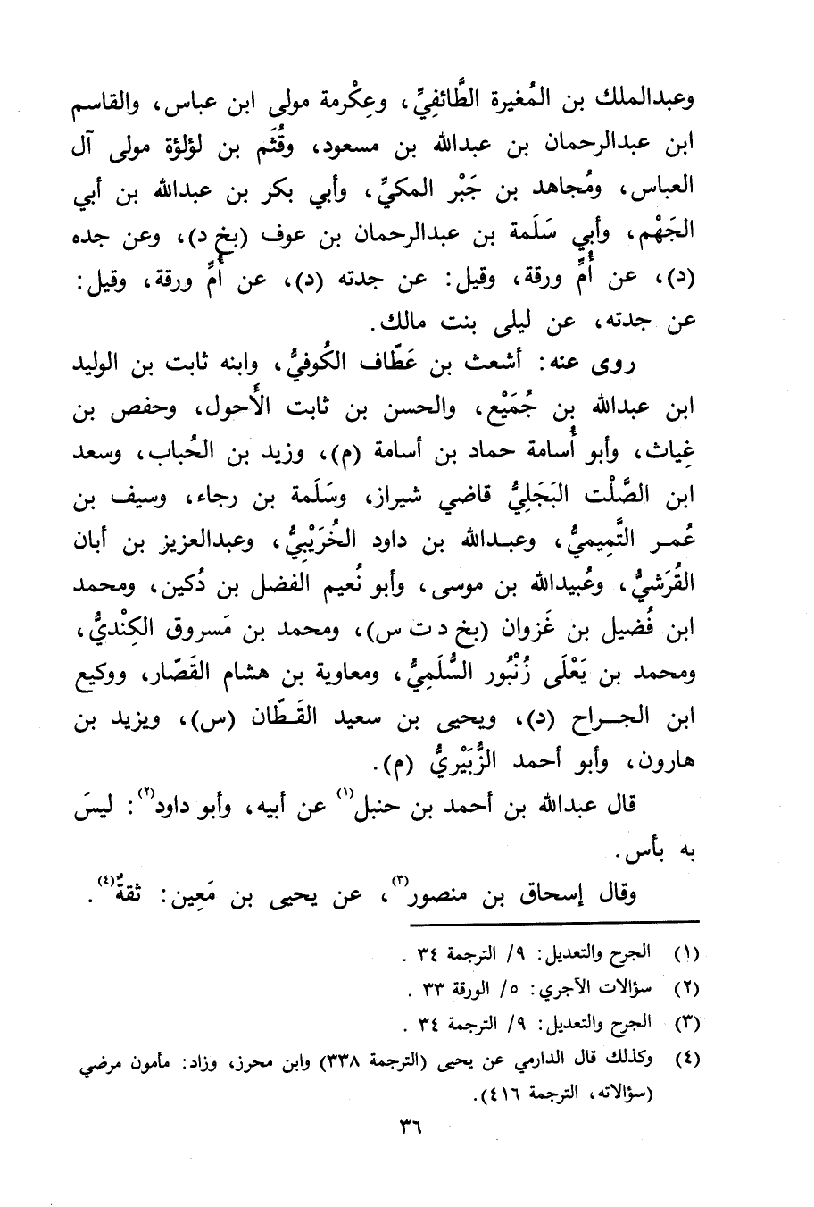 (1) الجرح والتعديل: 9 / الترجمة 34.