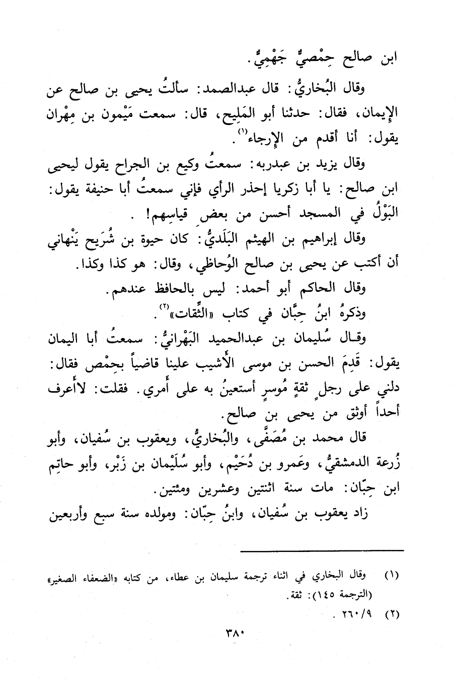 وقَال البُخارِيُّ: قال عبد الصمد: سألت يَحْيَى بْن صَالِح عَنِ الإيمان، فَقَالَ: حَدَّثَنَا أَبُو الْمَلِيح، قال: سمعت مَيْمُون بْن مهران يَقُول: أنا أقدم من الإرجاء (1) .