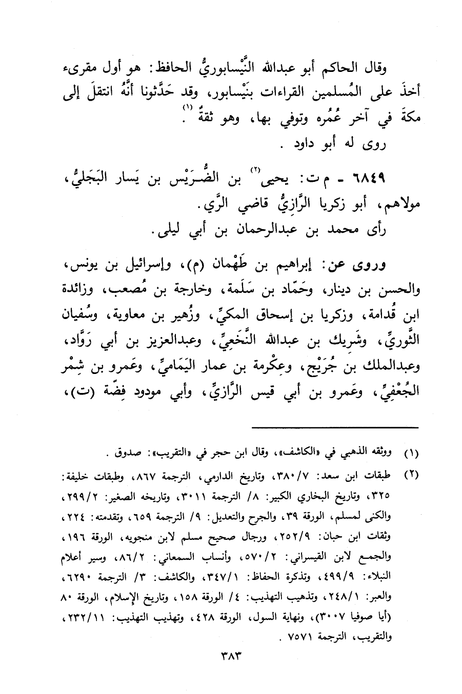 6849 - م ت: يَحْيَى بن الضريس بن يسار البجلي (2) ، مولاهم، أَبُو زكريا الرازي قاضي الري.