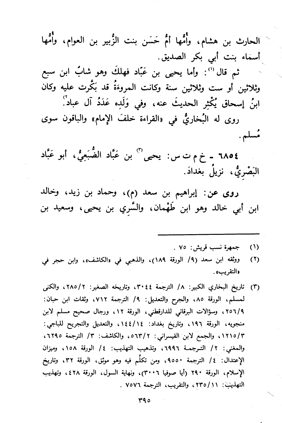 (6854 -) خ م ت س: يَحْيَى بن عباد الضبعي (3) ، أَبُو عباد البَصْرِيّ، نزيل بغداد.