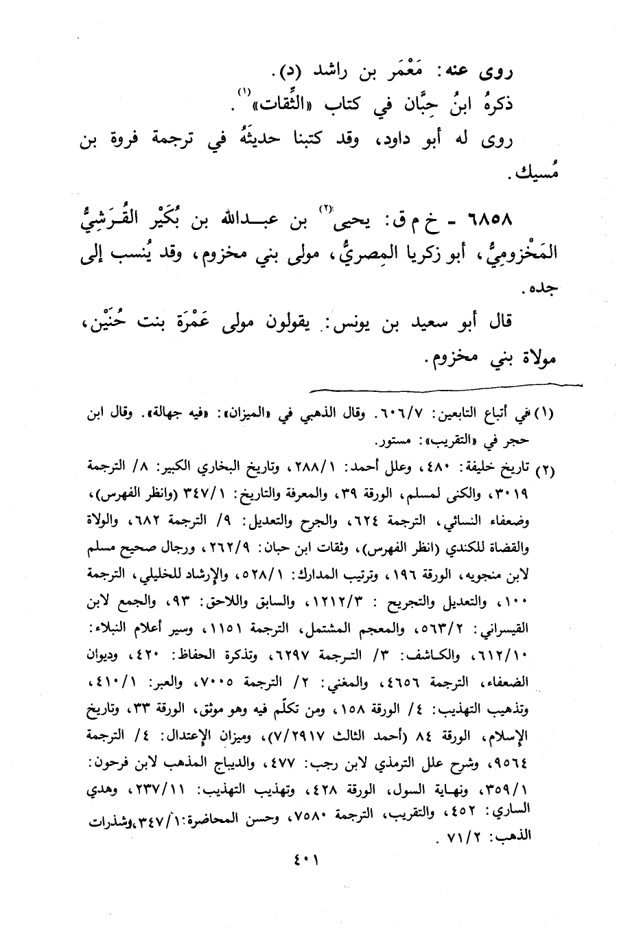 6858 - خ م ق: يَحْيَى بن عَبد اللَّهِ بن بُكَيْر القرشي الْمَخْزُومِيّ (2) ، أَبُو زكريا المِصْرِي، مولى بني مخزوم، وقد ينسب إلى جده.