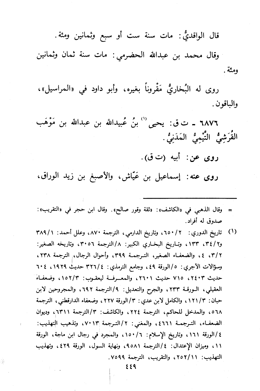 6876 - ت ق: يَحْيَى بن عُبَيد اللَّهِ بن عَبد اللَّهِ بن موهب القرشي التَّيْمِيّ المدني (1) .