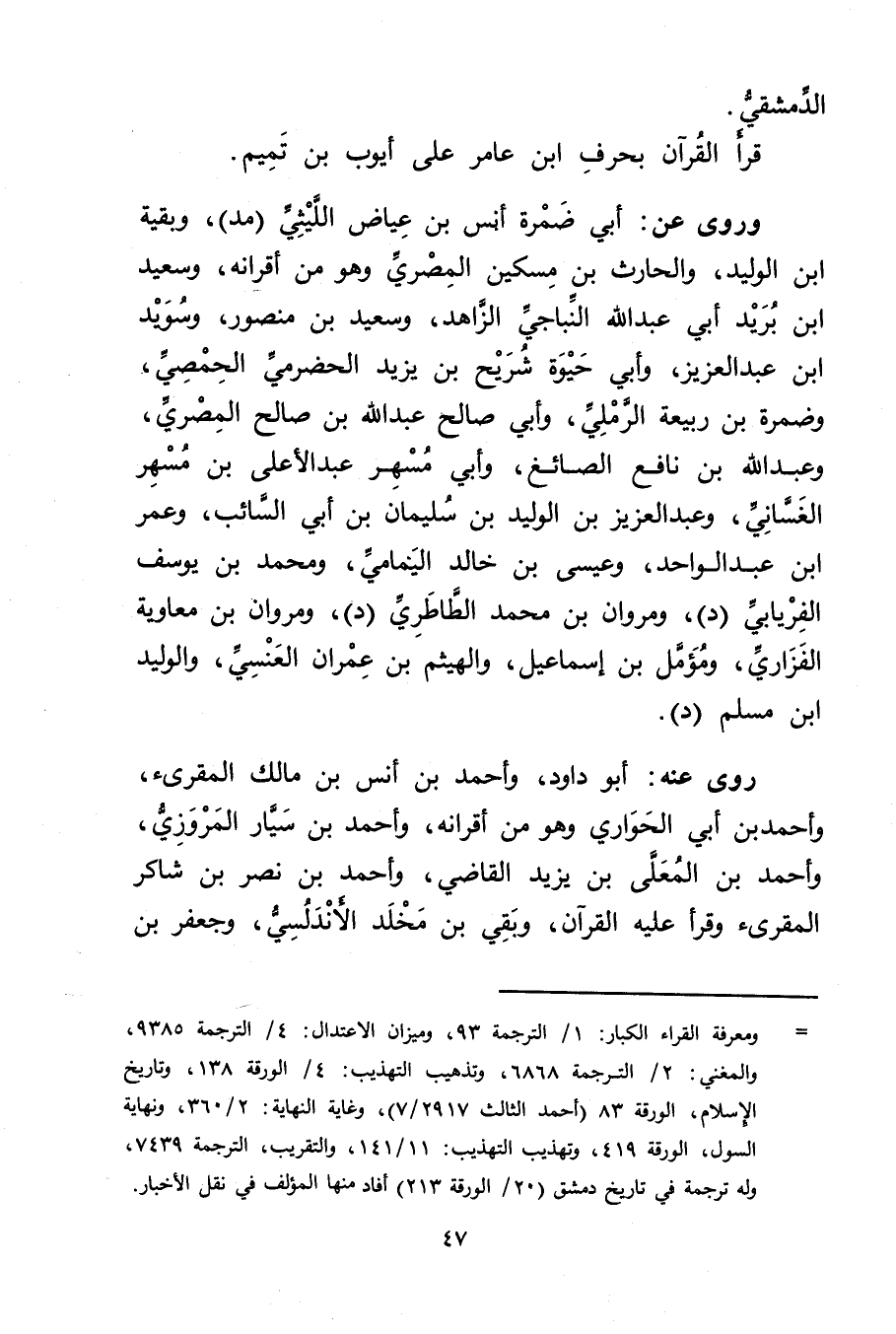 = ومعرفة القراء الكبار: 1 / الترجمة 93، وميزان الاعتدال: 4 / الترجمة 9385، والمغني: 2 / الترجمة 6868، وتذهيب التهذيب: 4 / الورقة 138، وتاريخ الاسلام، الورقة 83 (أحمد الثالث 2917 / 7) وغاية النهاية: 2 / 360، ونهاية السول، الورقة 419، وتهذيب التهذيب: 11 / 141، والتقريب، الترجمة 7439، وله ترجمة في تاريخ دمشق (20 / الورقة 213) أفاد منها المؤلف في نقل الاخبار.