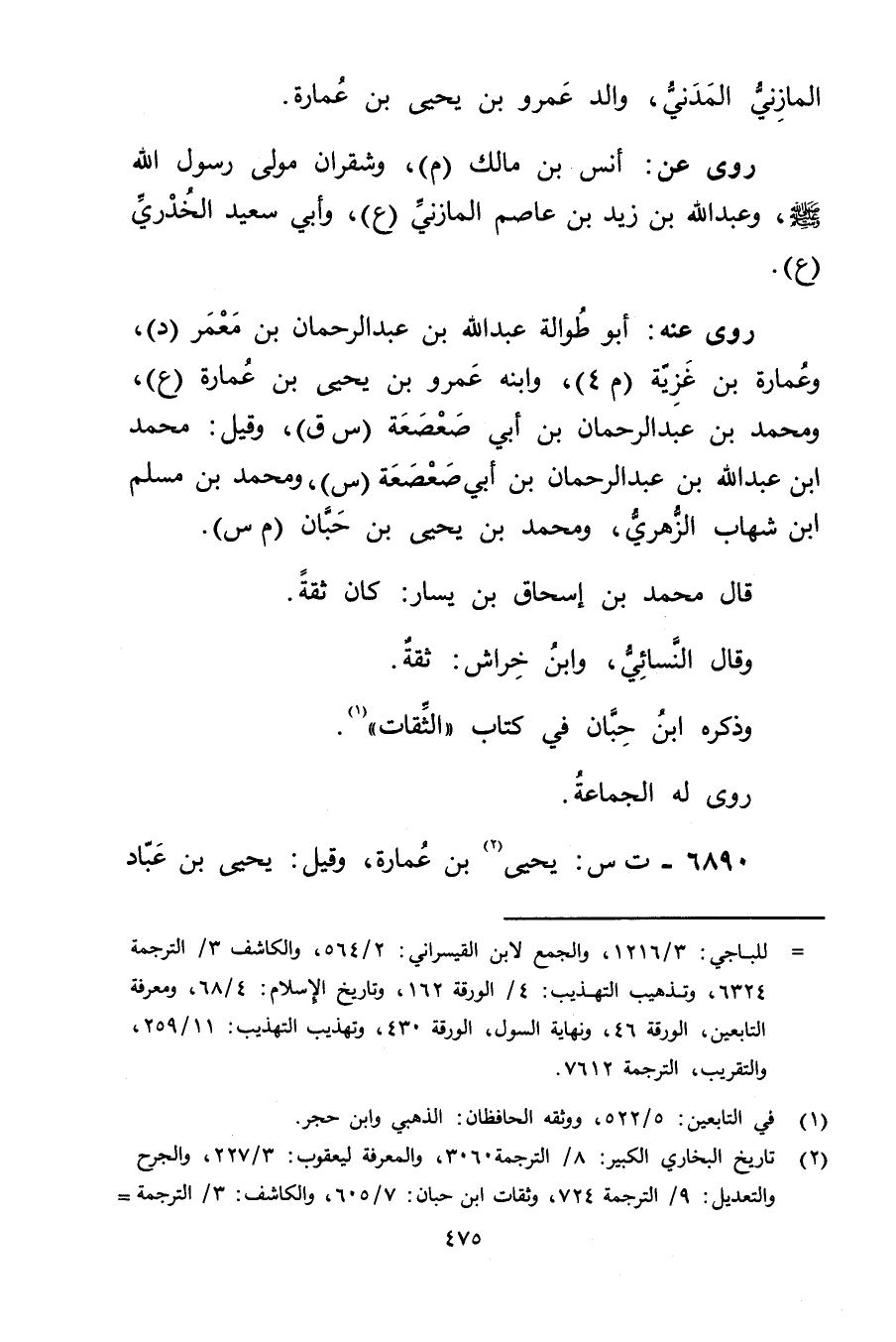 (6890 -) ت س: يَحْيَى بن عمارة (2) ، وقيل: يحيى بن عباد