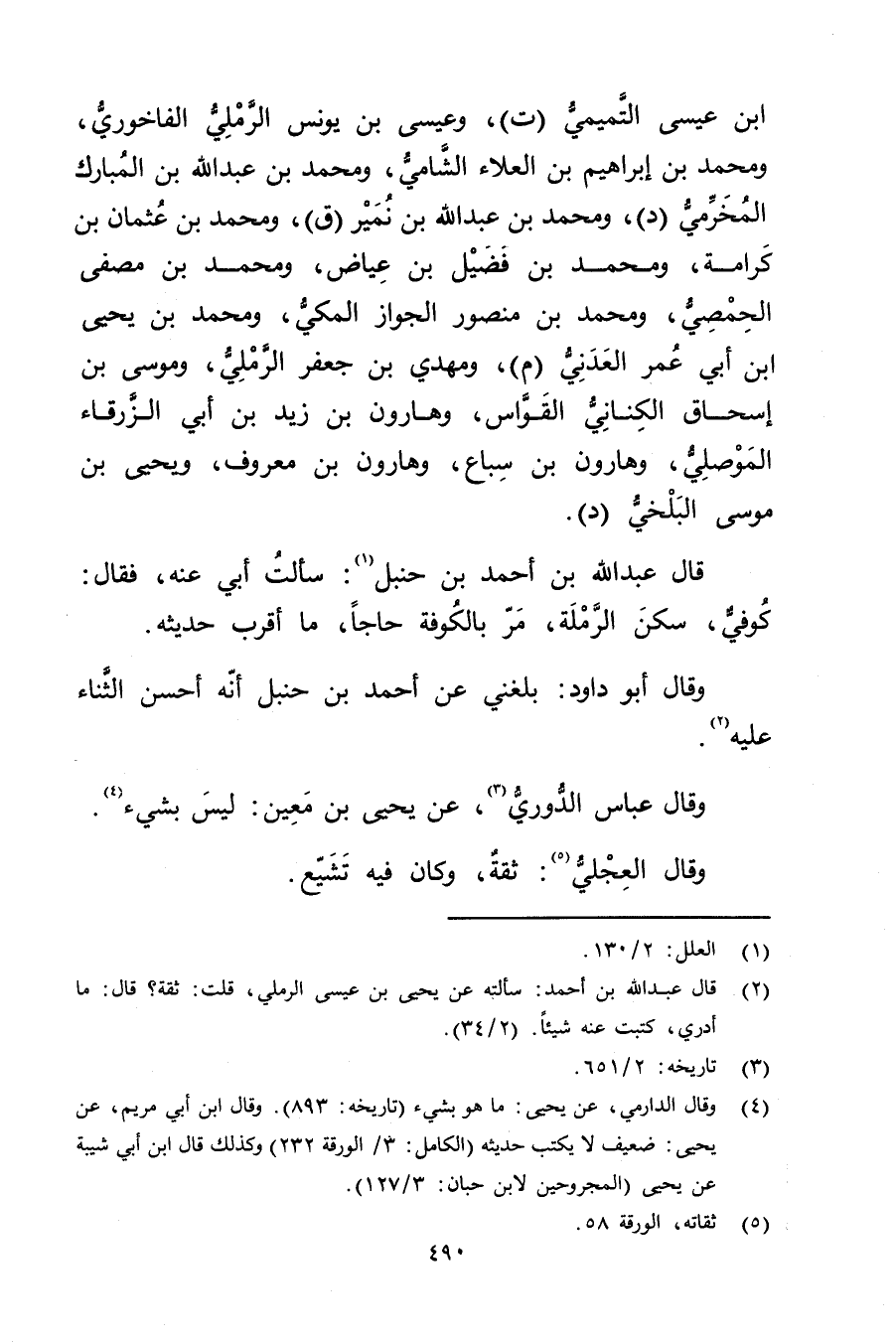 (2) قال عَبد اللَّهِ بْن أَحْمَد: سألته عن يحيى بن عيسى الرملي، قلت: ثقة؟ قال: ما أدري، كتبت عنه شيئا (2 / 34) .