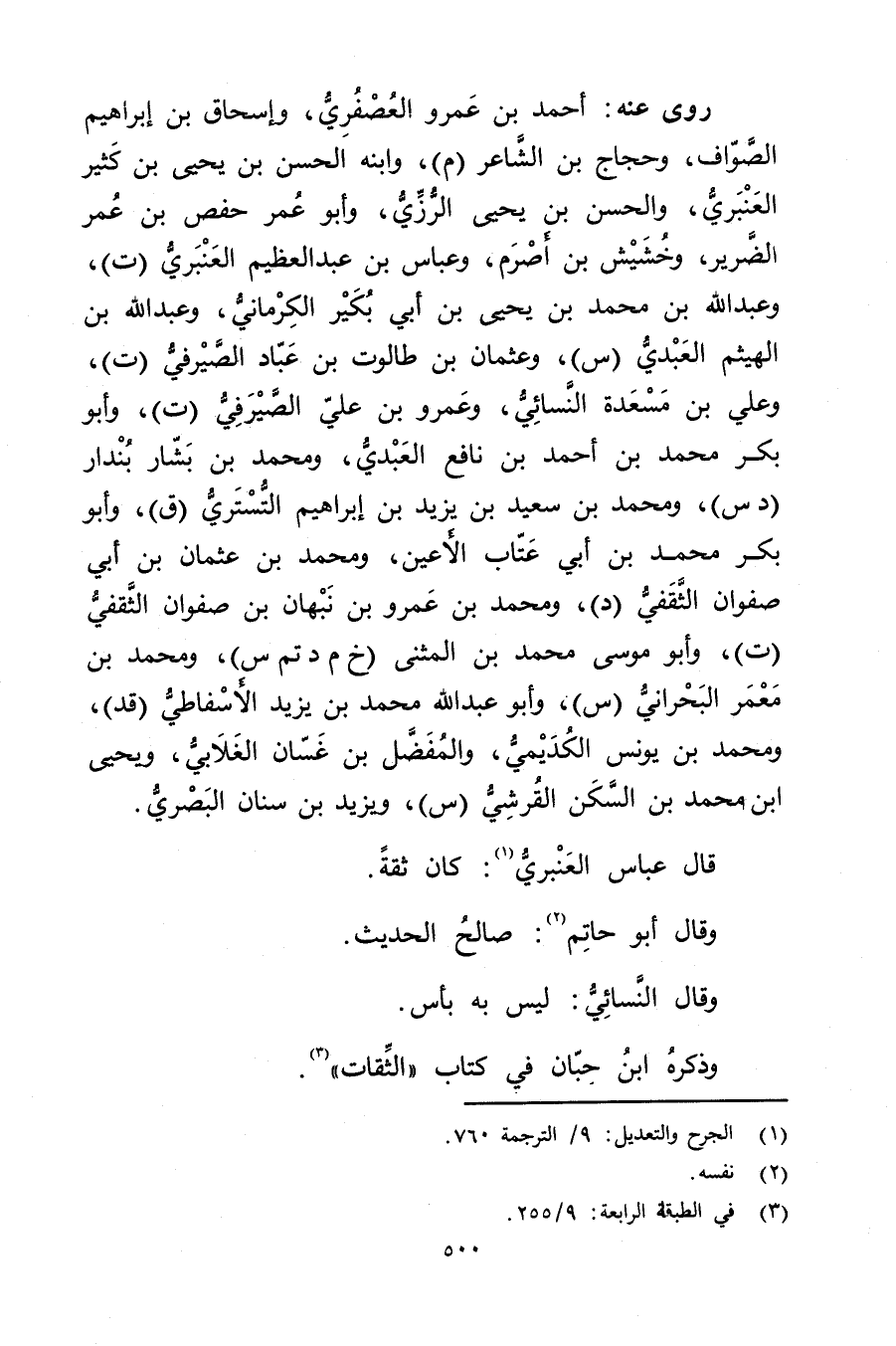 (1) الجرح والتعديل: 9 / الترجمة 760.