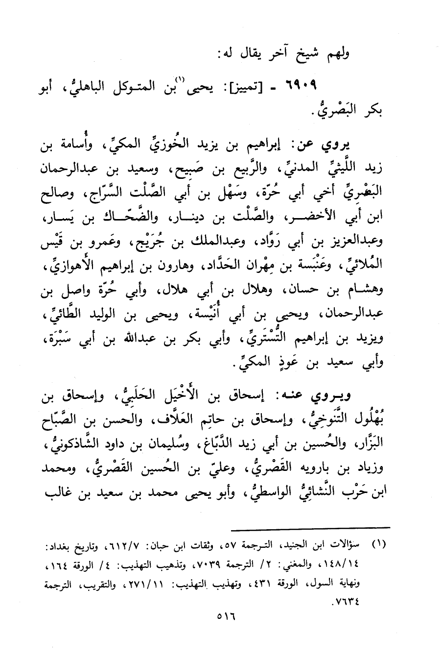 6909 - تمييز: يَحْيَى بن المتوكل الباهلي (1) ، أَبُو بَكْر البَصْرِيّ.