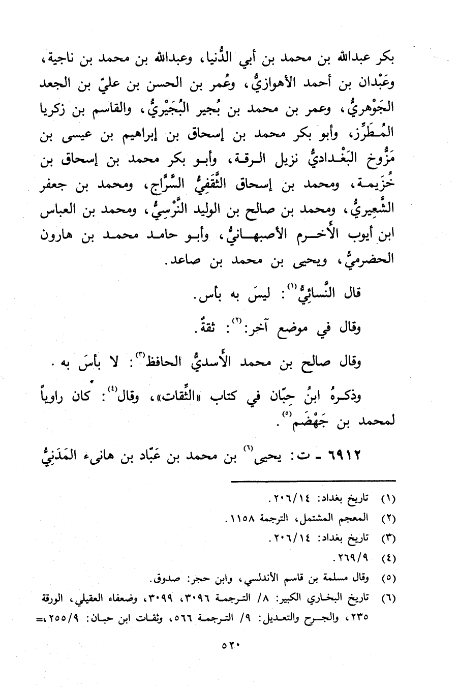 (6) تاريخ البخاري الكبير: 8 / الترجمة 3096، 3099، وضعفاء العقيلي، الورقة 235، والجرح والتعديل: 9 / الترجمة 566، وثقات ابن حبان: 9 / 255 =
