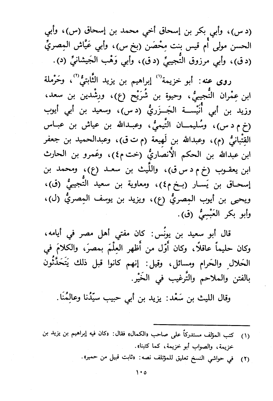 (1) كتب المؤلف مستدركا على صاحب" الكمال" فقال: كان فيه إبراهيم بن يزيد بن خزيمة، والصواب أبو خزيمة، كما كتبنا.