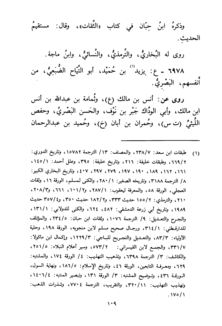 6978 - ع: يزيد بن حميد (1) ، أبوالتياح الضبعي، من أنفسهم، البَصْرِيّ.
